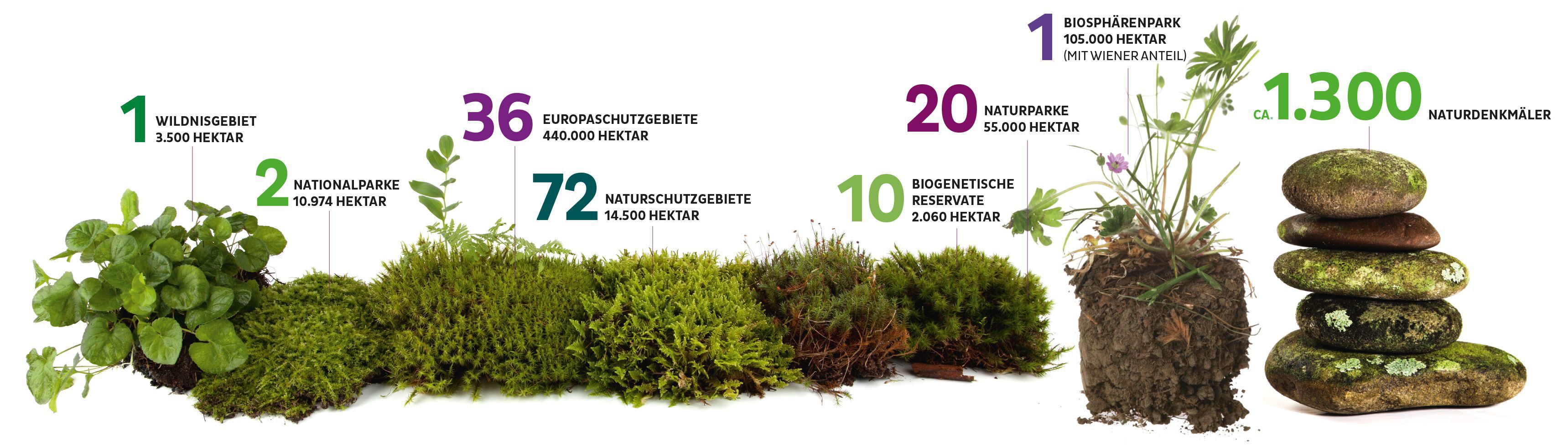 Die Schutzkategorien sind dabei vielfältig: Die Kronjuwelen der Natur sind Wildnisgebiete und Nationalparke. Das einzige Wildnisgebiet im Naturland NÖ liegt am Dürrenstein bei Lunz am See. Hier ist menschliches Tun nur in Form von streng limitierten Führungen geduldet – Schutz der Natur und Forschung haben oberste Priorität. Im Rothwald am Dürrenstein finden sich die größten Naturwälder in Österreich, die seit Jahrhunderten nicht mehr bewirtschaftet werden. Einzelne Bäume können dort ein Alter von bis zu 1.000 Jahren erreichen.