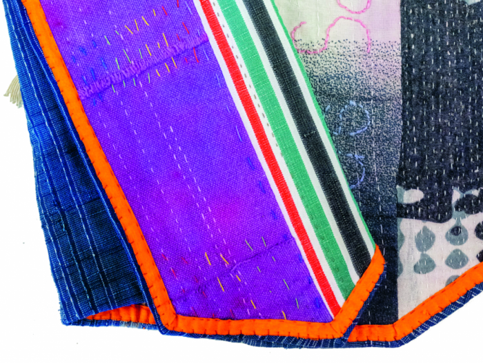 Boro nutzt patchworkartige Techniken, um alte Stoffreste zu neuen Textilien zusammenzusetzen.